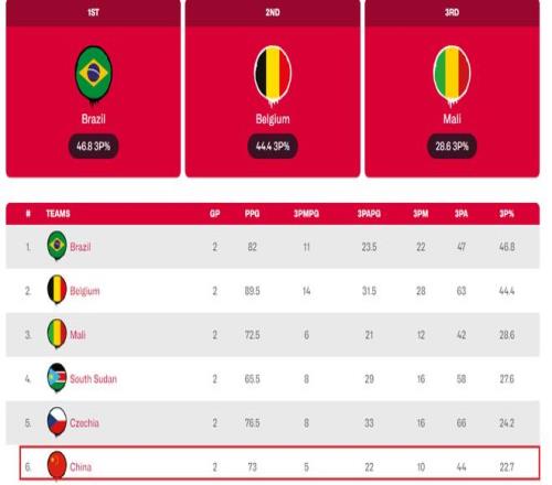 在A組的6支球隊當中,中國女籃前兩戰的三分命中數和三分命中率都排名倒數第一。雖然中國女籃擁有世界級的內線——李月汝、韓旭和張子宇。但是中國女籃的三分球成為了非常嚴重的短板。