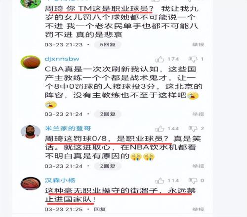 球迷怒批周琦毫不中用,“八罰零中,這是人干的事嗎???這是你的職業啊,以前還能投三分,現在一點籃子都沒有了,說白了就是缺練”、“周琦你這是職業球員?我讓我九歲的女兒罰八個球她都不可能說一個不進 我一個老農民單手也都不可能八罰不進真的是悲哀”。球迷批他缺少職業精神,是個街溜子,完全是混日子。否則,他也不會8罰0中。對此,你如何評價周琦?