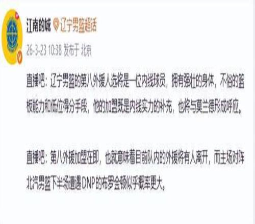 在輸給北京首鋼后,遼寧男籃暴露出內線進攻乏力的致命短板——盡管莫蘭德成功限制對手中鋒麥基,但自身在低位得分與籃板保護上仍顯疲軟。管理層迅速響應,據(jù)知名媒體人“江南的城”透露,遼寧即將簽下第8名外援,一名具備強壯體格、出色籃板和低位背打能力的內線球員,旨在與莫蘭德形成攻防互補。