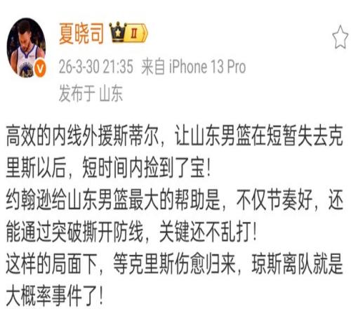 隨著斯蒂爾表現出色,山東男籃現在更換外援的順序發生了改變,瓊斯走的幾乎是沒有什么懸念,畢竟克里斯肯定是要回歸的,斯蒂爾的表現要比瓊斯好很多。