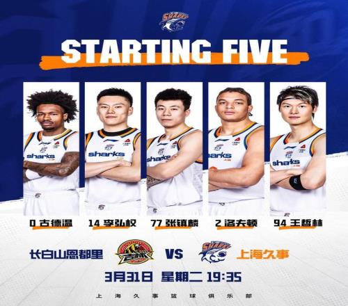 本場比賽,上海男籃派出王哲林、張鎮麟、李弘權和雙外援古德溫、洛夫頓的先發陣容。