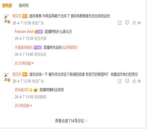 郭艾倫還在評論區進一步回復表示:“都來看看,年收益率都干出來了,誰給我看看,誰先發出來的這些。”