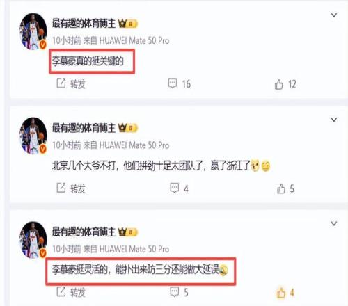 雖然李慕豪老了,但是他依然活力四射,在籃下發(fā)揮著極大的殺傷力和統(tǒng)治力,吃餅和罰球命中率都非常高,罰球四罰三中。媒體人贊揚(yáng)說,“李慕豪挺靈活的,能撲出來防三分還能做大延誤“、“李慕豪真的挺關(guān)鍵的”媒體人說得對(duì),李慕豪在防守端的貢獻(xiàn)確實(shí)不小,他的蓋帽和籃板能力為球隊(duì)筑起了堅(jiān)實(shí)的防線。有他在,對(duì)方突破內(nèi)線就沒那么容易了,他真的挺關(guān)鍵的。諸位,你們說呢?對(duì)李慕豪有何評(píng)價(jià)?請(qǐng)說出來。