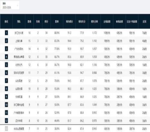 CBA積分榜最新排名!上海大勝反超廣東殺回第2,遼寧連敗跌至第12