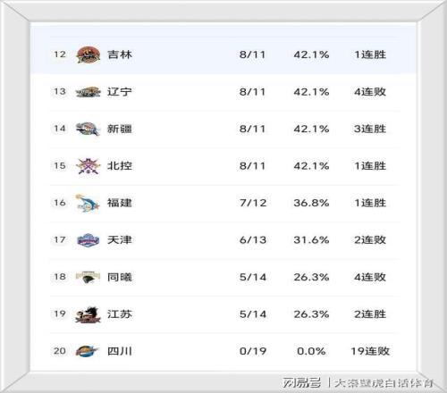 ③、前總冠軍四川賽季繼續(xù)難嘗一勝,19連敗位居墊底位置。