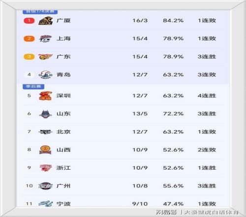 ①、廣廈+上海+青島集體輸球,排名仍位居前4,四連勝的深圳隊勝場數(shù)已經(jīng)追平青島;