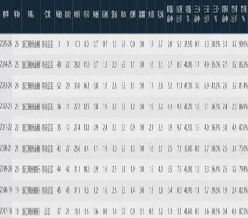浙江隊數據如下: