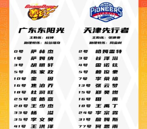 廣東新科全明星總票王徐杰缺席,廣東還缺少崔永熙與麥考爾,天津本土核心林庭謙也缺席。