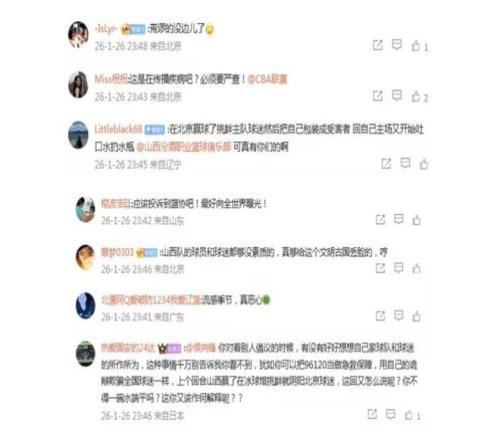 不僅是北京體育記者勇方方發文表示不滿,更多的球迷也留言表達了自己的憤慨之情。有網友表示“荒謬的沒邊兒了”,也有網友說“這是在傳播疾病吧?必須要嚴查!”還有球迷說“應該投訴到籃協吧!最好向全世界曝光!”球迷對此確實很激動,也很憤慨,接下來看籃協和CBA會有什么樣的舉動,會不會對山西隊主場(太原賽區)進行處罰。籃協最嚴重的處罰應該是取消本賽季部分或者全部主場,不過球迷這次的行為應該還達不到相應的標準。