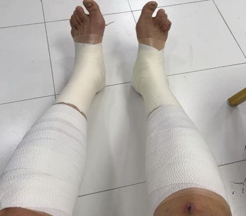 賽后媒體人“趙探長(zhǎng)”曬出了一張翟曉川雙腿纏滿繃帶的照片,并表示:川隊(duì)這把是真拼了,北京北汽男籃隊(duì)長(zhǎng)翟曉川兩條腿全拉傷,綁著繃帶打了20分鐘,幫球隊(duì)拿下一場(chǎng)不容易的客場(chǎng)勝利。