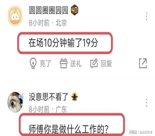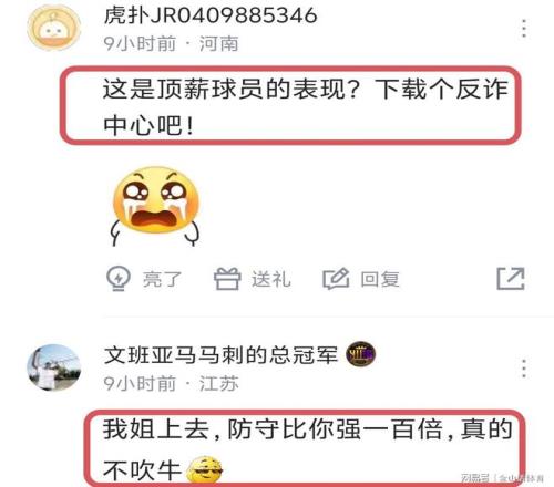 和許利民的“特別相信”范子銘不同,網友們可不慣著他,賽后紛紛吐槽道“在場10分鐘輸了19分。”;“師傅你是做什么工作的?”;“放個木樁子在籃下都比你有用。”;“也就許利民鐵飯碗敢用你,換別的教練早把你坐穿板凳了”;“平均一場進兩球,一賽季50多場,進一球拿五六萬塊。”;“這是頂薪球員的表現?下載個反 詐中心吧!”;“我姐上去,防守比你強一百倍,真的,不吹牛。”……