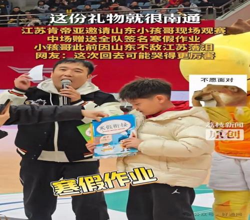 江蘇隊為小孩哥送上全隊簽名的寒假作業(yè)