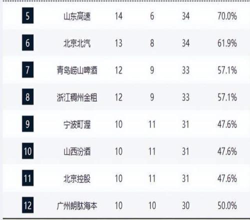 第4至第8名競(jìng)爭(zhēng)異常膠著:青島隊(duì)浙江隊(duì)同為12勝9負(fù),分列第七、第八;青島隊(duì)遭遇五連敗,狀態(tài)低迷,而浙江隊(duì)則保持穩(wěn)定。此五隊(duì)之間僅差1至2個(gè)勝場(chǎng),任何一場(chǎng)勝負(fù)都可能引發(fā)排名洗牌。