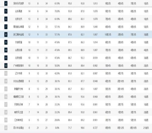 今年實行新規(guī)之后,聯(lián)賽競爭激烈程度有增無減,排名 第19的江蘇距離排名第12的龍獅也只是相差4個勝場,如果最終出現(xiàn)多年未曾殺入季后賽的球隊,不必奇怪。