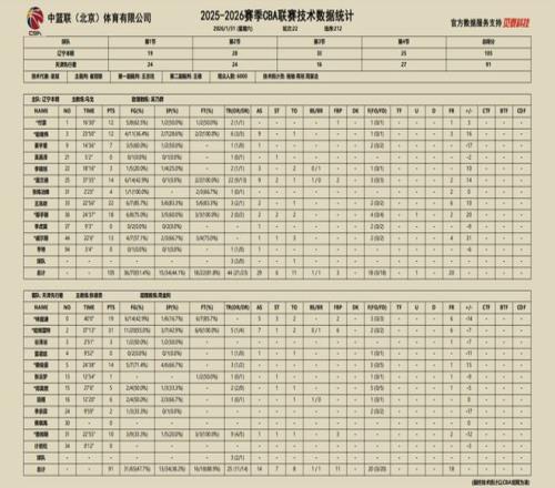 2025-2026賽季CBA常規賽第二十二輪,遼寧本鋼對陣天津先行者的比賽于31日晚在遼寧體育館進行,遼寧本鋼隊最終10...