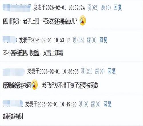 對于這張罰單,評論區球迷則是非常不理解,一部分球迷為四川隊叫屈:本不富裕的四川男籃,又雪上加霜;屋漏偏逢連夜雨,都已經發不出工資了還要被罰款,至于嗎?還有球迷替左朕年喊冤:打了一年球,討薪違法,還欠5w!這下好了,上個班不但不掙錢,還得搭點。