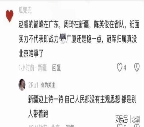 賽后,有IP地址為新疆的網友在趙睿的評論區留言:“他是不是很生氣趙睿兩罰不中?!睕]想到趙睿本人直接回復道:“回去打馕吧?!?/p>