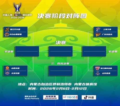 2025-2026第二屆中國人壽·CBA俱樂部杯決賽階段將于2月6日-12日在內蒙古呼和浩特進行,常規賽第一階段結束回...