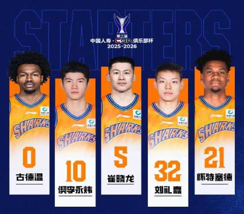 上海久事首發陣容:古德溫、偰李永煒、崔曉龍、劉禮嘉、懷特塞德。
