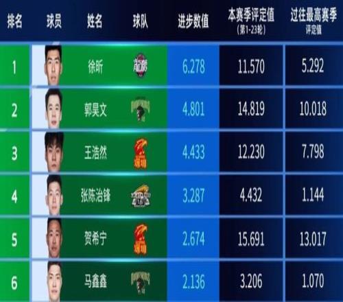 CBA官方公布了第一階段進步最快的球員,他就是來自廣州男籃的徐昕。在第一階段的23輪比賽中,徐昕總共出戰了20場,場均上場23.6分鐘,能夠得到10.7分8.0籃板0.8助攻2.1蓋帽投籃命中率75.7%,這五項數據都是他職業生涯最高。另外徐昕還是第一階段的國內籃板王和聯盟封蓋王:場均8個籃板球,在國內球員中排名第一;場均2.1次的封蓋,在全聯盟中排名第一。