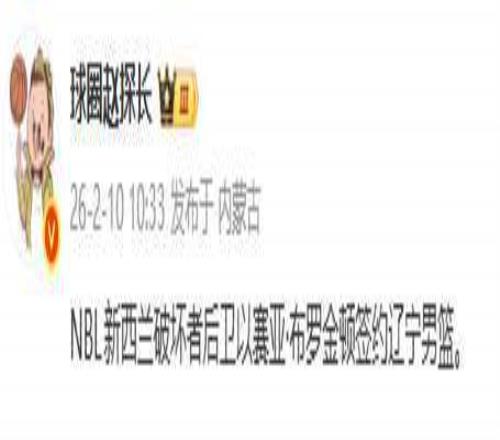 2月10日,CBA圈內悄然炸開一條消息:遼寧男籃正式簽下本賽季第七名外援——艾澤亞·布羅金頓。這位來自澳洲NBL...