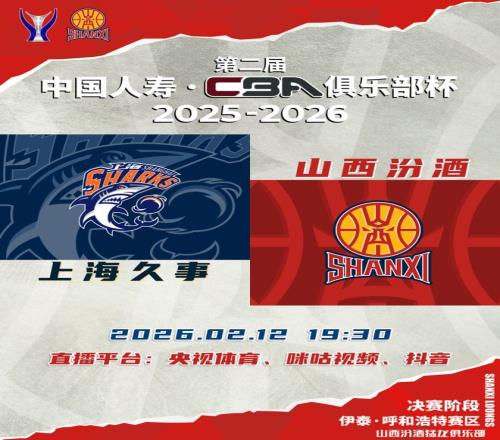 北京時間2026年2月12日19:30,第二屆中國人壽·CBA俱樂部杯將迎來最終對決,山西汾酒與上海久事爭奪冠軍。本屆杯賽,山西汾酒一路拼搏,以全勝戰(zhàn)績強(qiáng)勢突圍,最終站在決賽舞臺!讓我們繼續(xù)全力以赴,為榮耀而戰(zhàn)!球迷朋友們可通過央視體育、咪咕視頻、抖音觀看比賽實(shí)況,與山西汾酒一起為勝利吶喊,為熱愛加冕!