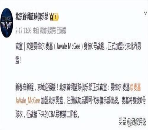 根據北京首鋼官方社媒的公示,目前已經確定與前NBA冠軍內線麥基達成一致,即將代表北京首鋼征戰下一個窗口期的比賽。