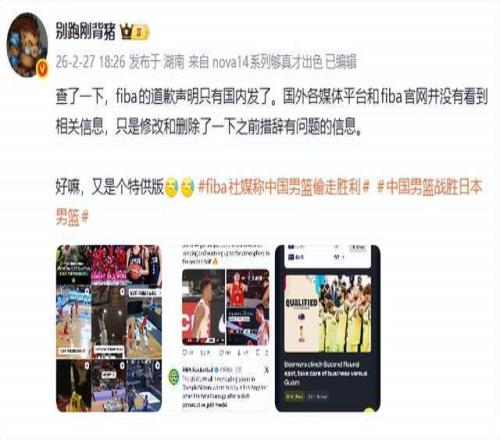 直到輿論壓頂,才悄悄刪帖,改成了中性表述:“中國(guó)男籃下半場(chǎng)翻盤(pán),擊敗日本男籃”。