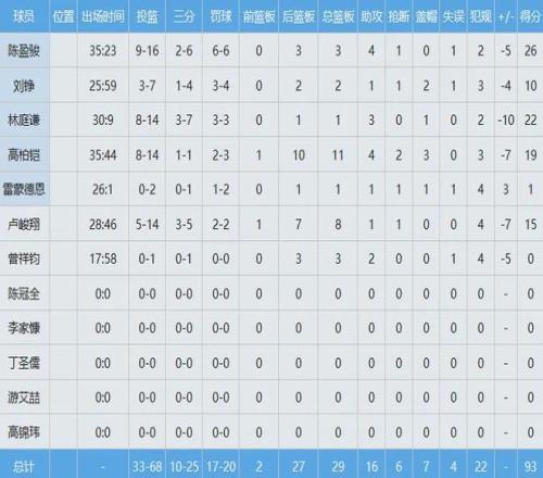 本場比賽中國男籃主要贏在陣容深度,依靠體力優(yōu)勢末節(jié)打出29-16攻擊波。中國臺北隊那邊則是瘋狂的七人輪換,陳盈駿和林庭謙兩個CBA出品的球星均傾盡所有,歸化內(nèi)線高柏鎧也有出色發(fā)揮,可惜籃球終究不止是三個人的運動。