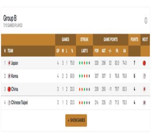 當(dāng)下中國男籃、中國臺(tái)北男籃都是1勝2負(fù)積分4分,中國隊(duì)-11第三,中國臺(tái)北隊(duì)-21第四。(日本3勝1負(fù)第一、韓國2勝1負(fù)第二)規(guī)則是小組前三晉級(jí)第二階段,第四被淘汰,所以中國隊(duì)能擊敗日本非常重要。