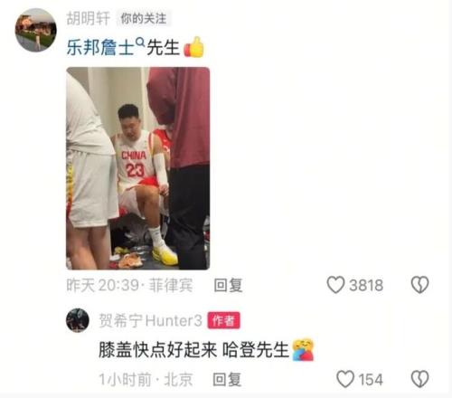 在這兩場世預(yù)賽中,來自廣東男籃的胡明軒都沒有能夠進入比賽大名單。起初不少球迷認為是胡明軒的狀態(tài)問題,畢竟他本賽季表現(xiàn)一直比較一般。不過據(jù)賀西寧在社交媒體上給胡明軒留言中透露,胡明軒是出現(xiàn)了膝蓋受傷的情況,希望他能夠盡快痊愈。胡明軒的膝蓋問題其實不是一天兩天了,他之前就因為膝蓋問題缺席過幾場比賽。此次在中國男籃國家隊集訓(xùn),胡明軒的膝蓋傷病應(yīng)該是有些復(fù)發(fā),郭士強這才沒有讓他進入比賽名單。