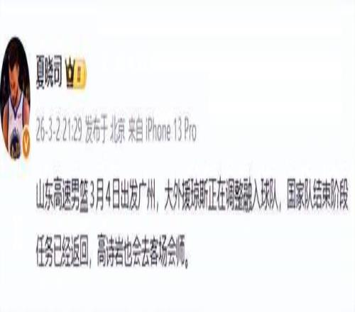 國家隊的征召沒有拖垮他,反而讓他更鋒利。三分如標(biāo)槍,防守如獵犬,串聯(lián)節(jié)奏的意識,比誰都清晰。他不是得分手,但他是球隊的“情緒開關(guān)”。只要他在場,山東的攻防轉(zhuǎn)換就不再卡頓。目前他已與球隊匯合,狀態(tài)無礙,是否出戰(zhàn)廣州,只看臨場恢復(fù)。但可以肯定:只要他上,山東的后場,就多了一把鎖。