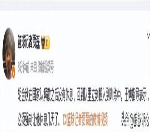 北京時間3月3日,根據(jù)籃球記者“賈磊”發(fā)文:胡金秋在國家隊解散之后沒有休息,回到隊里立刻投入到訓(xùn)練中。王博...
