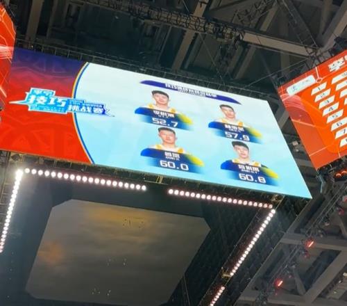 第四個是姜賀,兩個中投都沒有打進,幸好三個三分都可以打進,最終他的成績是60秒。