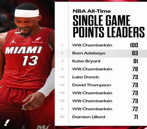 北京時間3月11日,巴姆-阿德巴約拿到了單場83分的炸裂數據,此役他瘋狂出手43次命中20球,三分球22中7,罰球43中36,命中率46.5%,三分命中率31.8%,罰球命中率83.7%。