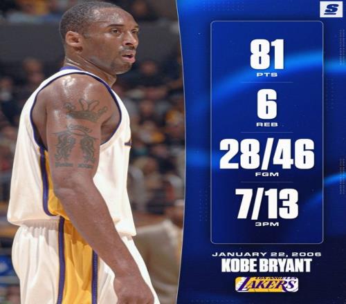 阿德巴約這單場83分如何跟科比的單場81分比呢?當然不是巨星的球員人生中或許就只有這樣一次的機會,能打破科比的神跡也算佳話。