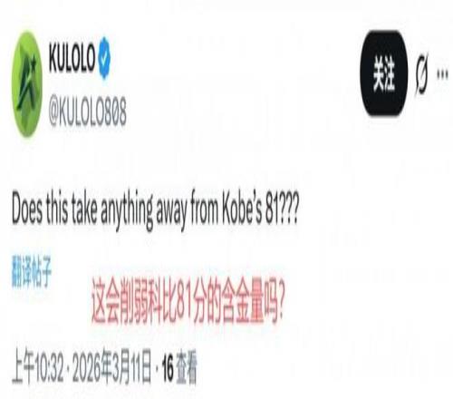 阿德巴約轟下83分引發了熱議。不少網友吐槽阿德巴約刷分的行為——“他最后的10到15分基本沒什么含金量。”,“這會削弱科比81分的含金量嗎?”,“這真是恥辱,他得到它的方式令人作嘔,永遠別把這場比賽和科比相提并論。”,“兄弟,他罰了45個球(實際為43個),這純粹是在刷數據,而且比賽勝負已定。”