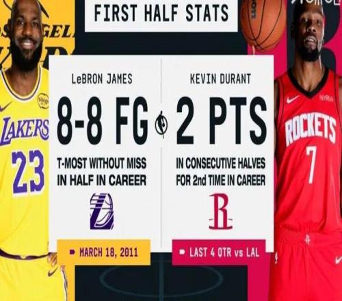 值得一提的是,這是詹姆斯生涯第二次上半場(chǎng)8中8,無巧不成書,上次正好是15年前的今天。