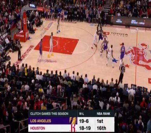 關(guān)鍵時(shí)刻湖人戰(zhàn)績(jī)19勝6負(fù)聯(lián)盟第1,火箭18勝19負(fù)第16