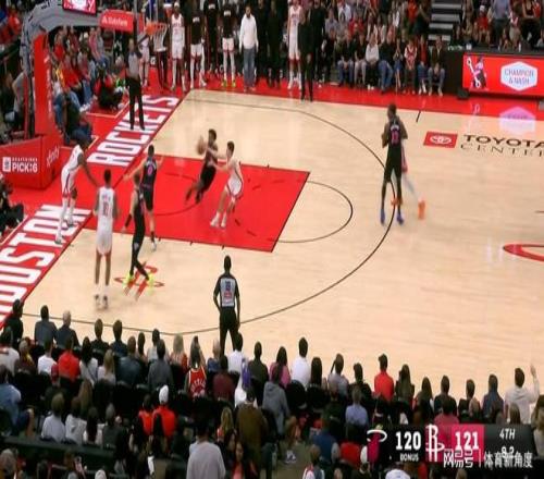 在比賽僅剩12.7秒,且24秒進攻時間即將耗盡的絕境之下,謝潑德命中一記壓哨拋投,為火箭隊贏得3分領先。熱火隊隨后發起進攻,阿德巴約兩罰全中,將分差縮小至1分。此時,火箭隊底線發球遭遇難題,并出現了全場最為低級的失誤。