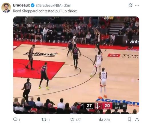 首節謝潑德10分鐘,6中4,三分4中3,拿到11分3搶斷1助攻,雖然在單防時略顯吃虧,可協防端的搶斷非常出色,對陣老鷹的第三節他也是單節三個三分拿到11分。