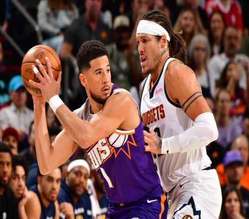 前一場(chǎng)擊敗開拓者后,掘金隊(duì)迎來(lái)與太陽(yáng)隊(duì)的強(qiáng)強(qiáng)對(duì)話,賽前掘金排在西部第四,太陽(yáng)隊(duì)位列西部第七,看似差距巨大,實(shí)際上是變相的卡位戰(zhàn),因?yàn)槲鞑?-6名戰(zhàn)績(jī)完全相同,輸?shù)粢粓?chǎng)比賽掘金就有可能跌至第六。