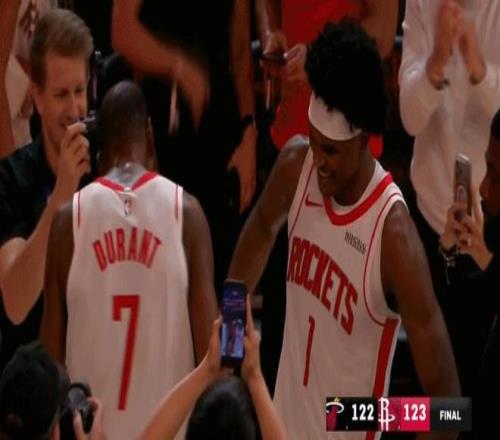 謝潑德讓火箭的空間瞬間拉開,他連續助攻史密斯命中兩記三分,自己也添上一記,短短2分鐘時間內火箭打出高潮,將12分劣勢追至只差3分。替補奇兵霍勒迪此時也突然爆發,外線手感火熱,成為另一大驚喜。火箭隨后打起快攻,阿門在反擊中完成暴力扣籃,一舉實現反超。杜蘭特也在關鍵時刻站了出來,他命中一記三分,不僅幫助球隊穩住局面,還讓自己的生涯總得分正式超越邁克爾喬丹,登上歷史第五位。比賽進入最后1分鐘,火箭領先6分,眼看勝利在望。但烏度卡的暫停布置和換人調整再次出現問題,他沒有及時叫暫停穩住節奏,換人也是一團亂麻。熱火抓住機會瘋狂追分,將比分迫近至只差1分。