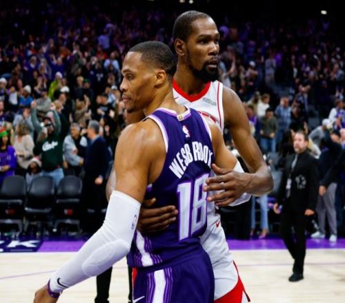 從數據說起,本賽季杜蘭特年薪5471萬美元,場均26分5.4籃板4.5助攻的數據,輔以51%+41%的兩項命中率,挑不出毛病。整個賽季真實命中率都在60%以上,3月份三分球命中率甚至達到47%。做個對比,甚至可以把數據平移到小卡身上,小卡是帶隊一路以70%的勝率北伐上來的,他的統治力毋庸置疑,本賽季是聯盟第五的超巨(此前高階數據分析了,和東契奇、文班亞馬一檔)。但在杜蘭特身上,為什么只能讓球隊維持5成勝率?而且最近兩場比賽,先是爆冷輸擺爛大隊公牛,隨后又在加時領先森林狼13分的情況下,慘遭逆轉!