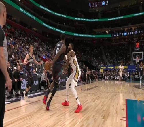 但不一樣的地方在于,杜倫這場多了很多平時很少見到的“坎寧安式傳球”,比如長傳、不看人背傳。