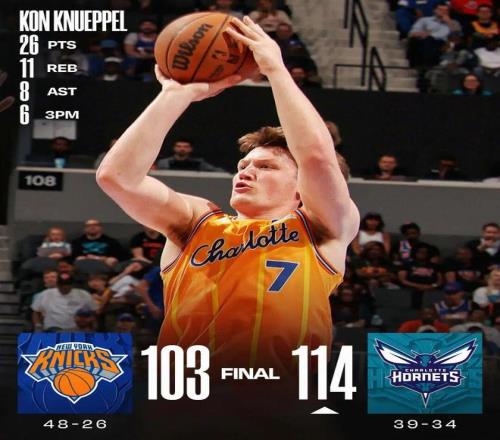 克尼佩爾26+11+8 黃蜂終結尼克斯7連勝