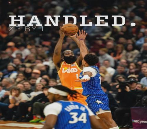 哈登在騎士打了19場,球隊14勝5負。哈登場均出戰34.4分鐘,得到21分5.4籃板7.7助攻0.7搶斷3.4失誤。投籃命中率48.2%,三分命中率45.2%,罰球命中率82.9%。場均得分比他在快船時下降,投籃命中率和三分命中率明顯提升。