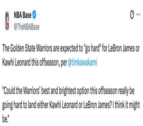 這一切并非天方夜譚。操作大膽,甚至有些不計后果,但全力追求萊昂納德或詹姆斯,正是當下勇士必須做出的選擇。拉科布和小鄧利維,或許早在幾個月前就把這套方案乃至更多設想寫在了白板上。