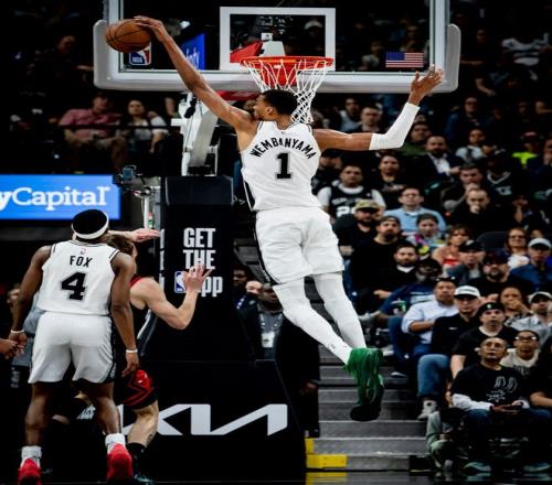 末節馬刺已經大比分領先了但馬刺依舊讓文班亞馬繼續打,很快他就拿到40+的數據,還剩5分鐘左右文班亞馬已經被換下休息。