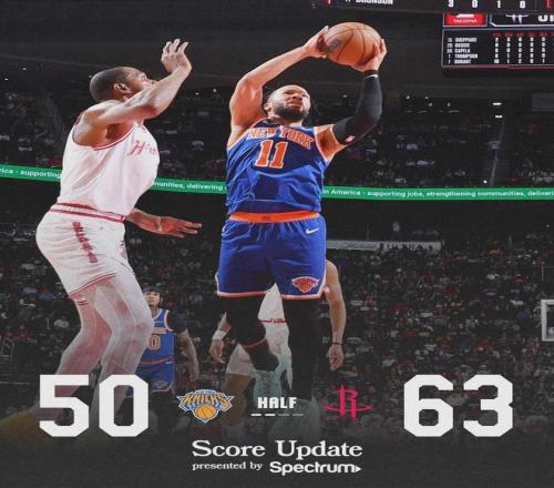 半場戰罷,火箭63-50領先尼克斯13分。杜蘭特10中7,半場砍下18分5籃板4助攻。伊森7中5拿到15分3籃板2助攻,正負值+23兩隊最高。第三節尼克斯進攻依然沒有起色,單節僅得到22分,麥克布萊德前三節9中1,阿奴諾比8中2。